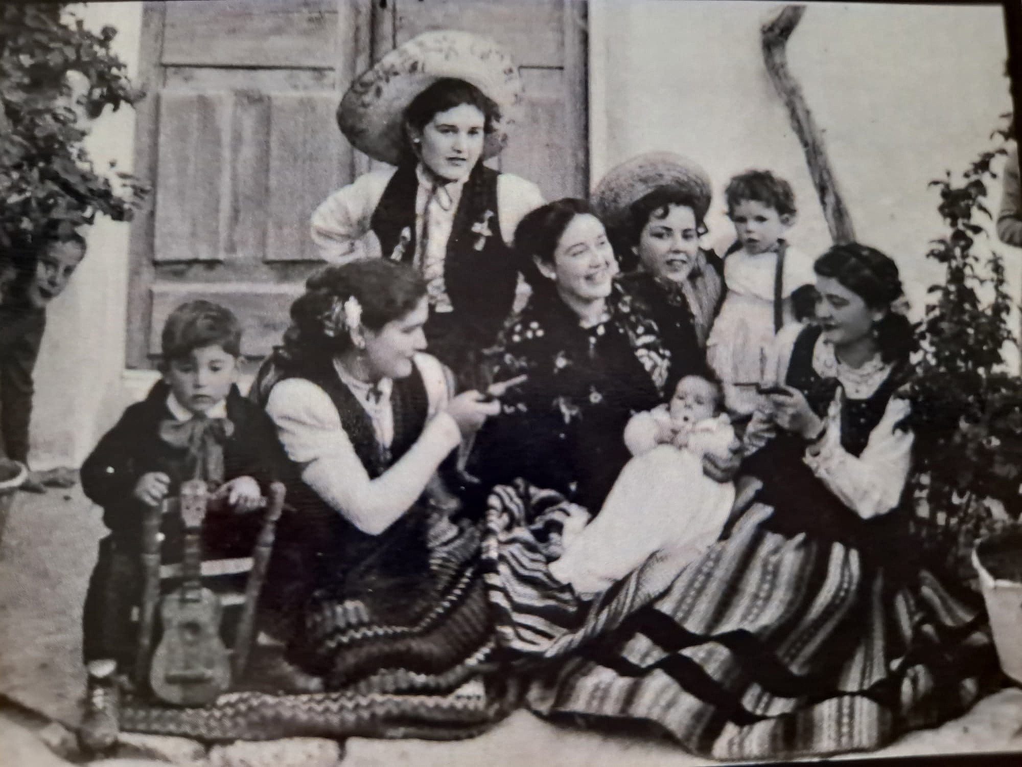 Lo máximo del Carnaval era el baile de máscaras del Domingo de Piñata, que era muy animado y muy ameno; y eso que se celebraba en plena Cuaresma, justo el domingo siguiente al Miércoles de Ceniza. La mayoría llevaba la cara tapada y Felipete con su acordeón, hacía bailar hasta a las piedras. Todo se llenaba de papelillos, serpentinas y gorritos de colores. Recuerdo a las amigas de mi hermana Maritina que, con dieciocho o diecinueve años, se lo pasaban en grande. Estaban, además de la Maritina, la Mere de Pedro, la Nati y la Lila de Moisés, la Jesusa de Eusebio; la María, la Anita y la Jesusa de Justino, la Mari Carmen de Marino, la Clemen, la Tere de Amalio… Hay una foto, que tenía mi hermana con toda aquella panda, en el ambigú del baile, en la que se percibe la atmósfera alegre y desenfadada del Carnaval.