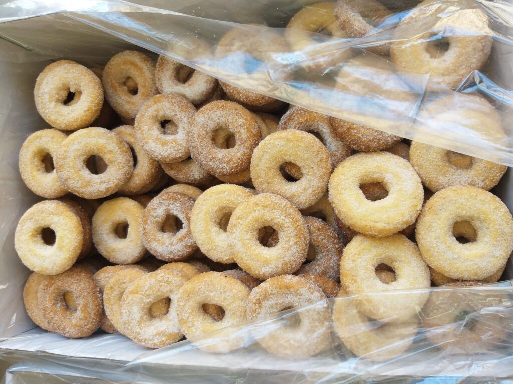 Se hace una masa con todos los ingredientes, añadiendo en primer lugar el aceite, anís y el vino y posteriormente la harina, la manteca, el azúcar y la levadura. Se amasa hasta que quede compacta, se forman pequeños roscos y se introduce al horno.