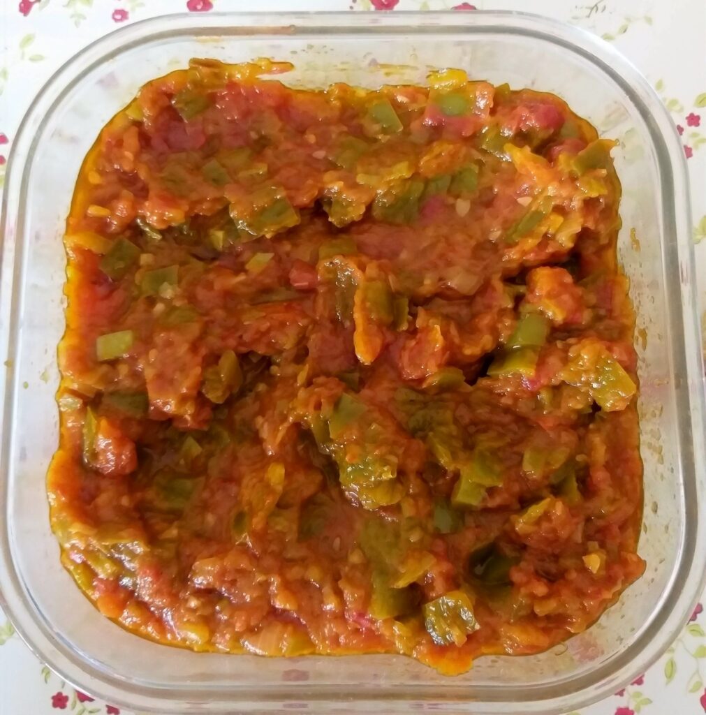 Se cortan los tomates y pimientos en trozos muy pequeños y se fríe todo junto.