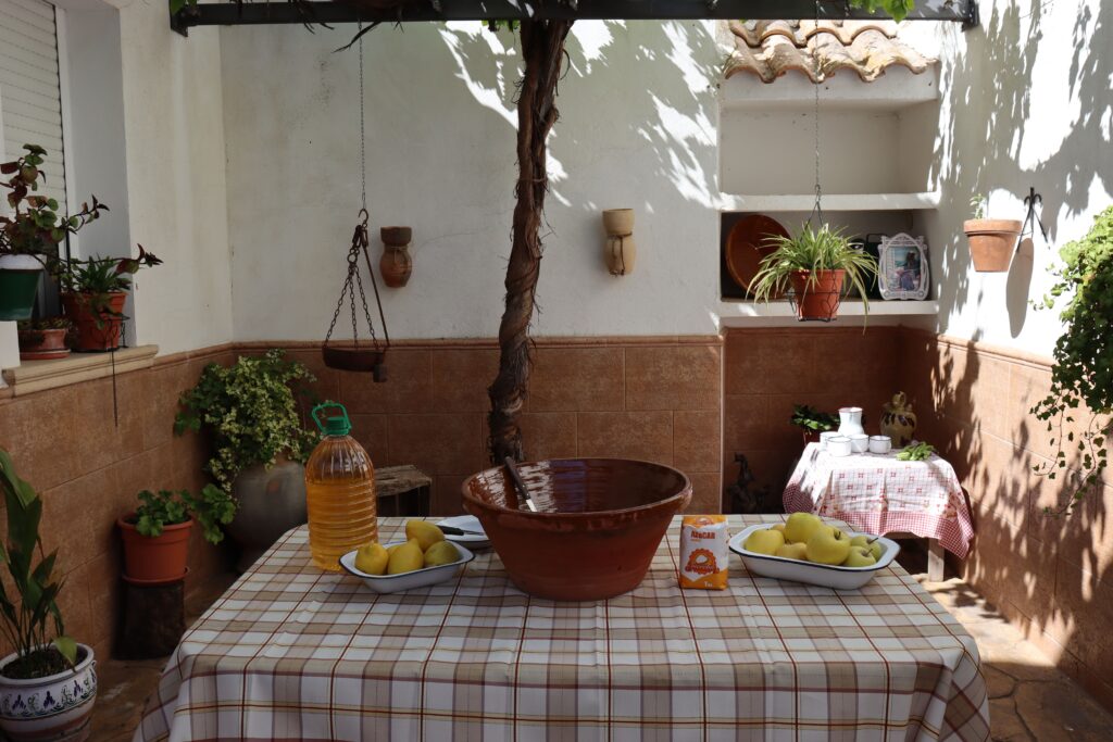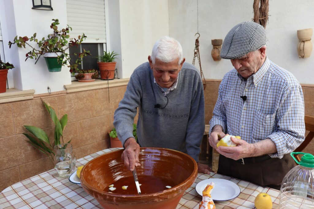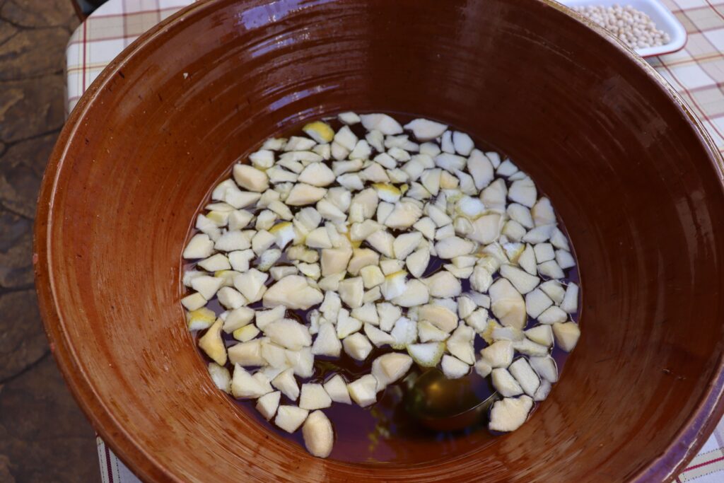 En un lebrillo, se deshace el azúcar en agua, se añade la ralladura de limón. Posteriormente se añade el vino mientras se remueve la mezcla, por último, se añade la manzana. En algunas ocasiones, se añade también melocotón.